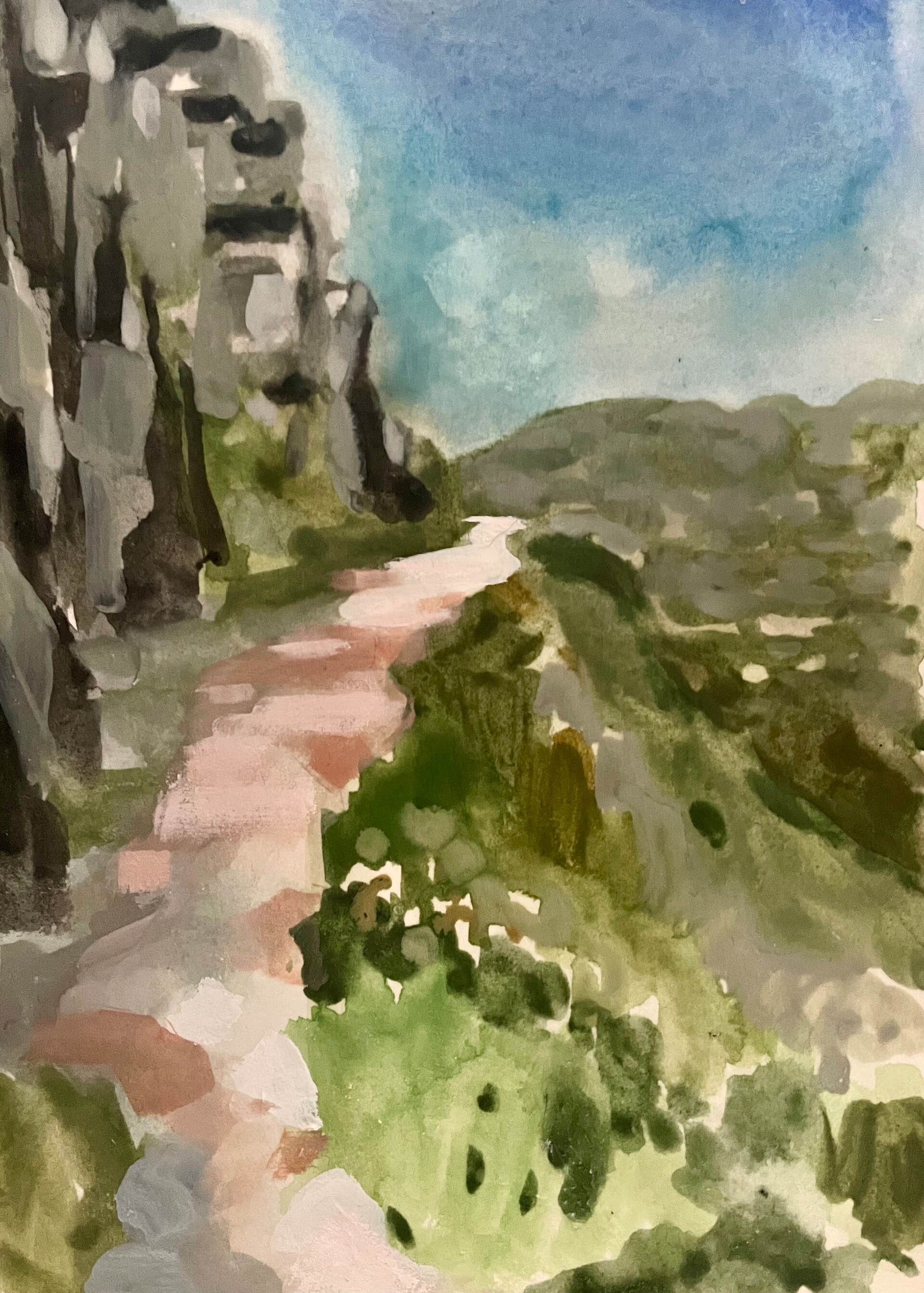 These A5 gouache paintings were done on site, to capture what I saw and also felt, and then informed larger studio oil paintings